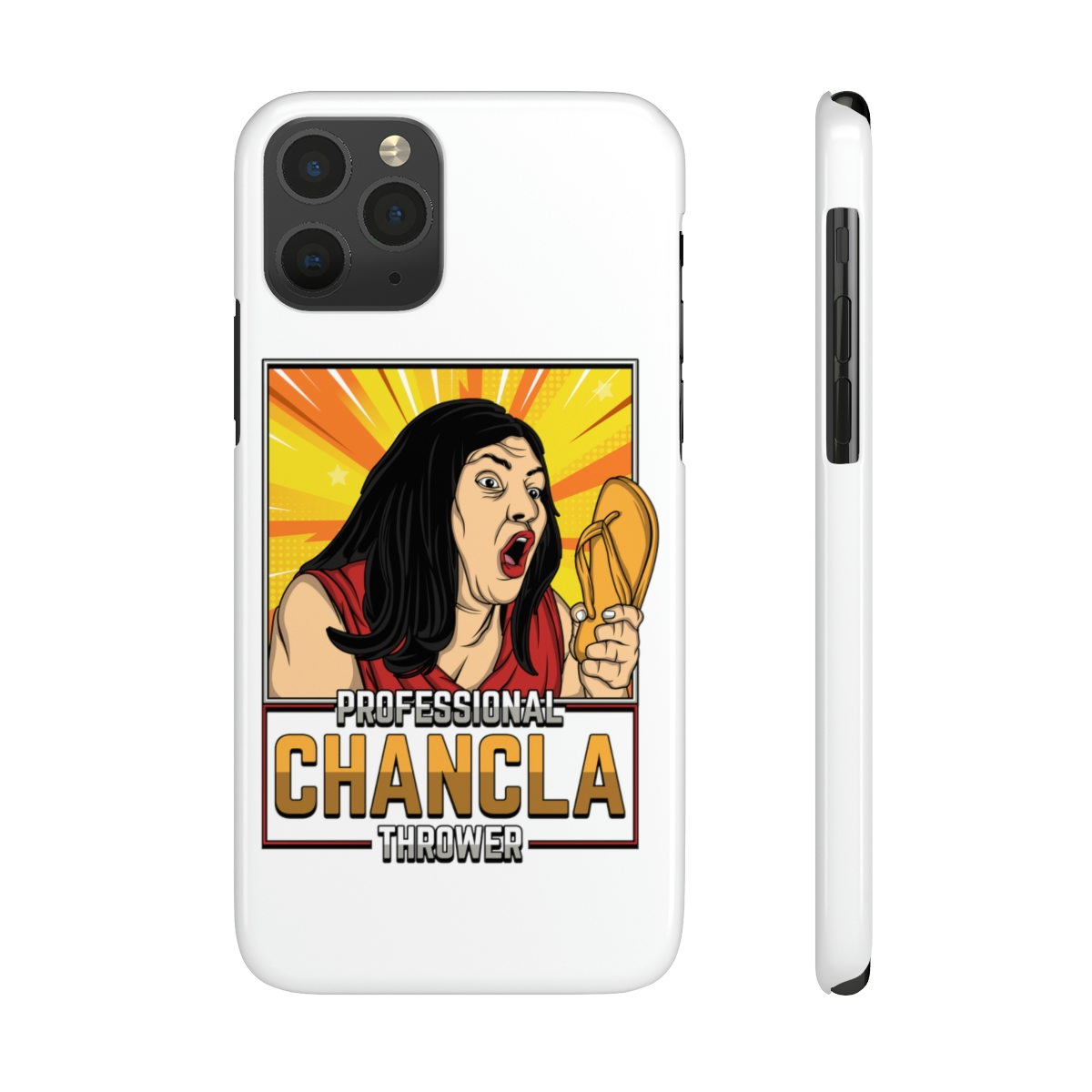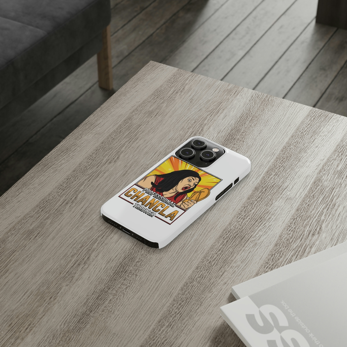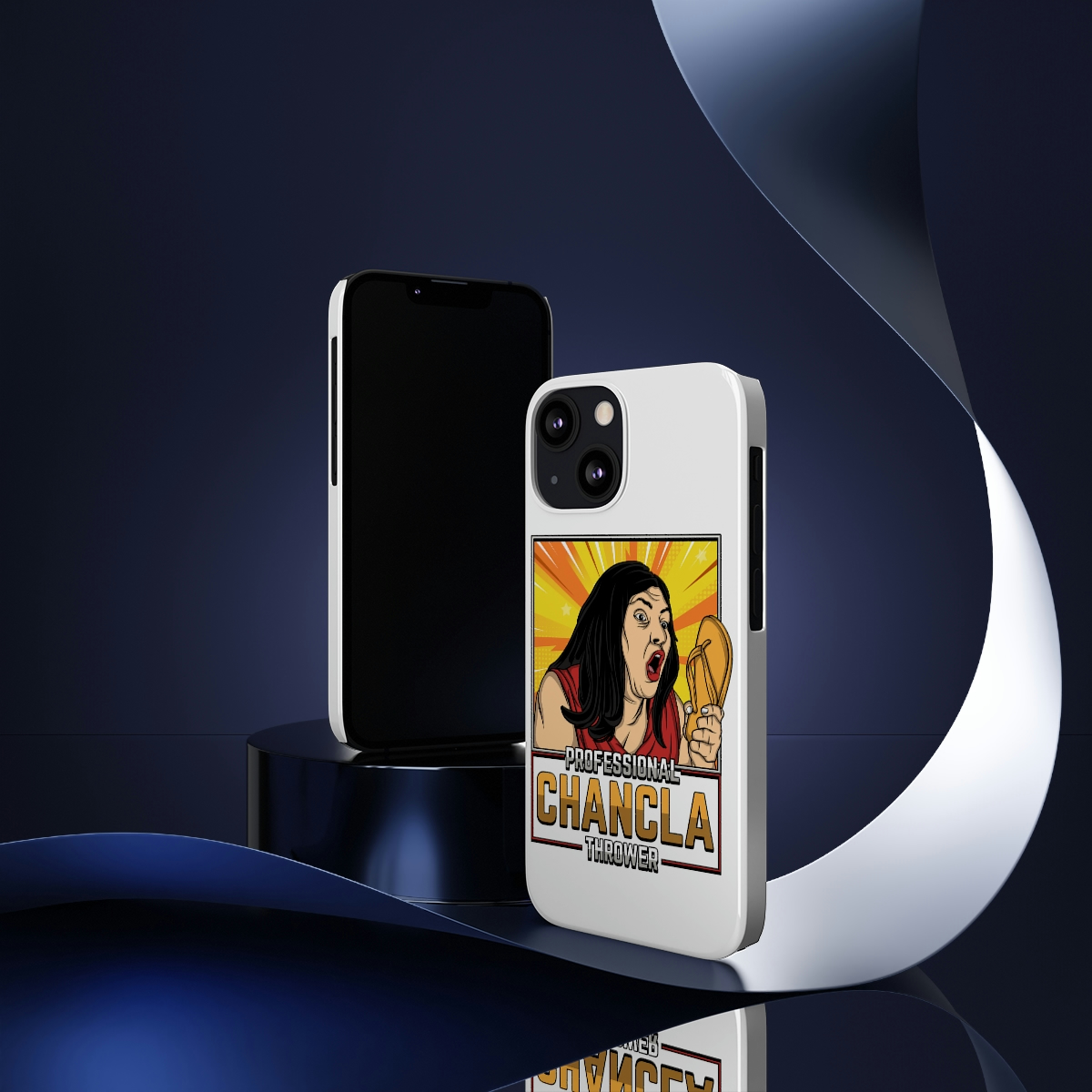 In addition, the flexible and super-slim design of these cases provides a flawless fit that translates your ideas into high-detail designs, creating a stunning visual appeal that complements your phone’s aesthetics. Upgrade your phone’s protection and style with the Chancla Thrower Slim Phone Cases.