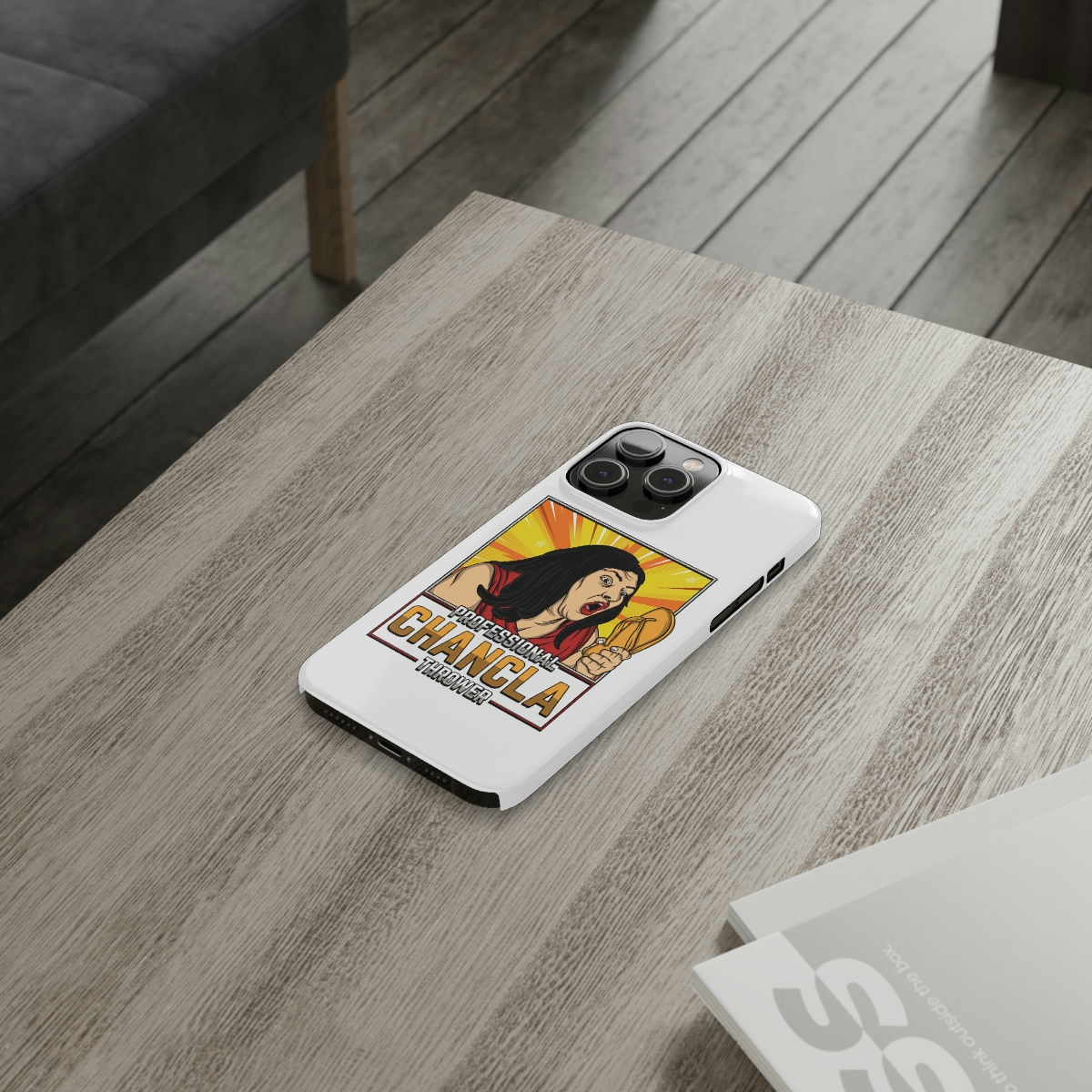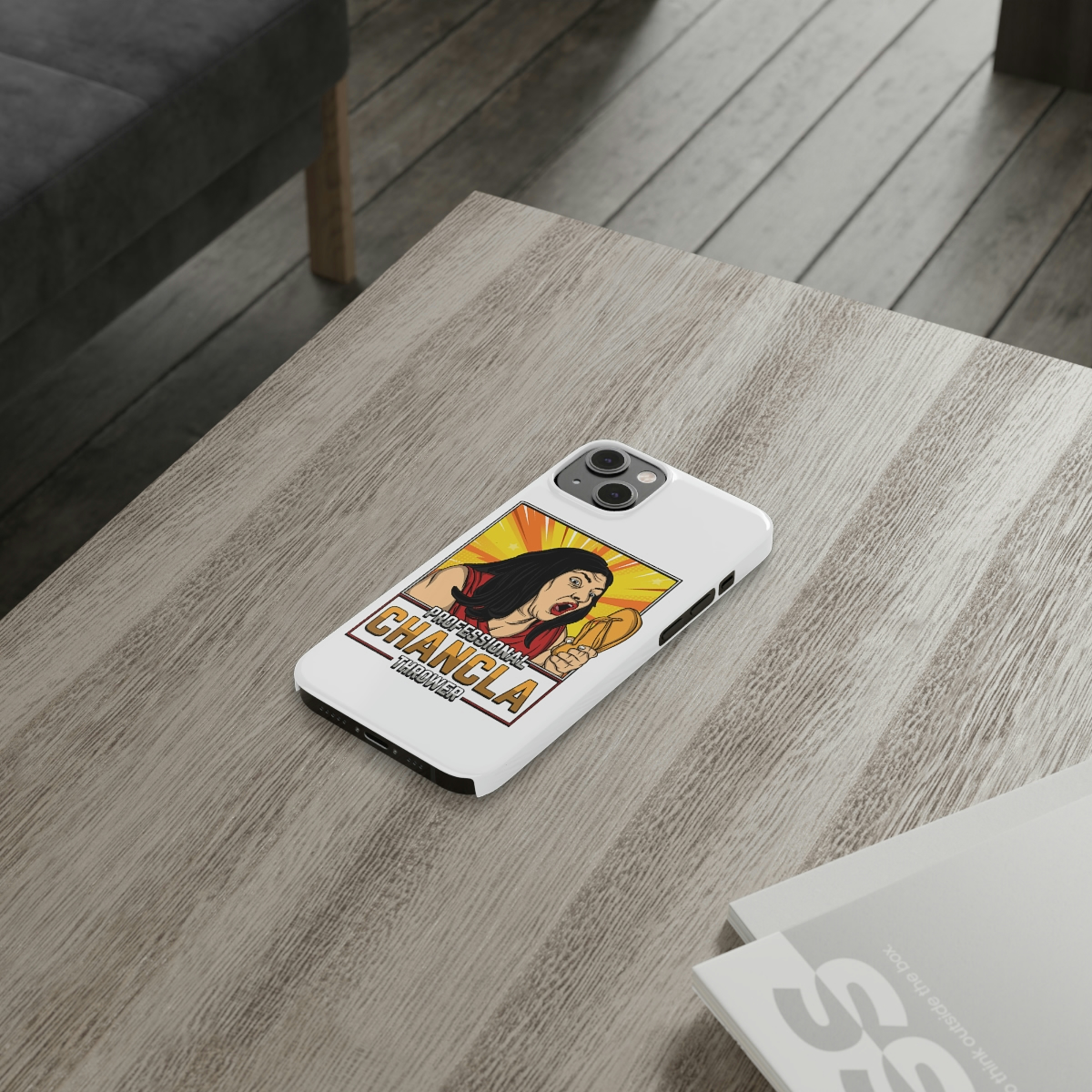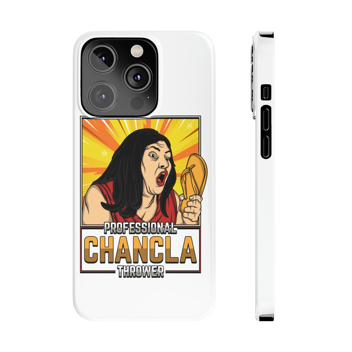 In addition, the flexible and super-slim design of these cases provides a flawless fit that translates your ideas into high-detail designs, creating a stunning visual appeal that complements your phone’s aesthetics. Upgrade your phone’s protection and style with the Chancla Thrower Slim Phone Cases.