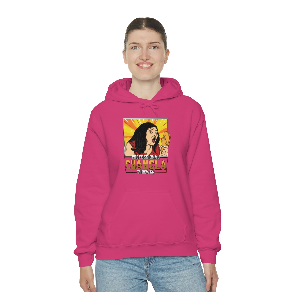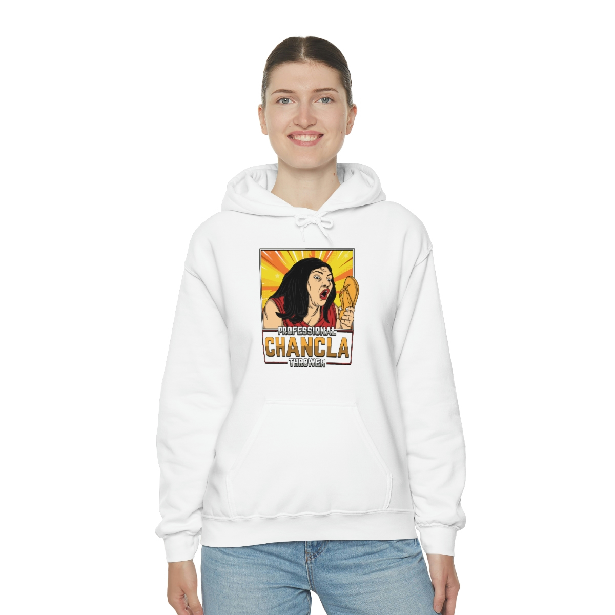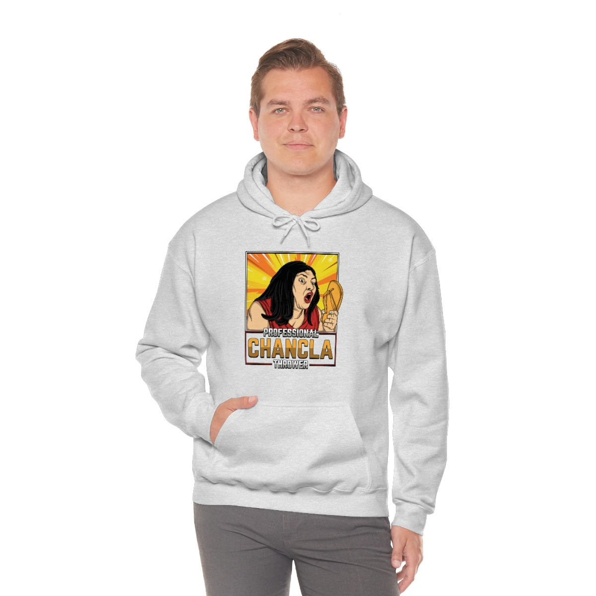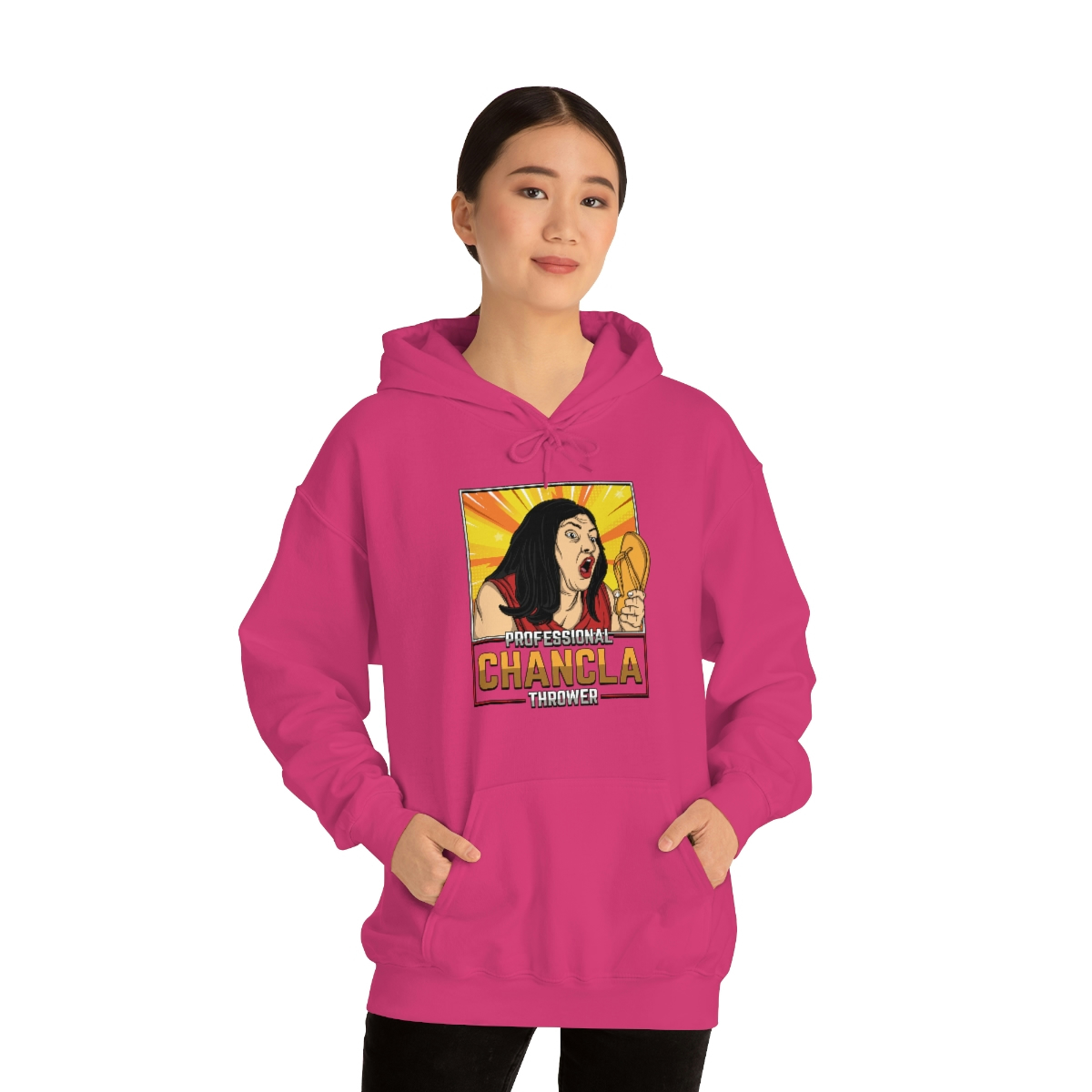 Are you a Professional Chancla Thrower? Do you want to show off your skills in style? Then look no further than this Professional Chancla Thrower Unisex Heavy Blend™ Hooded Sweatshirt.