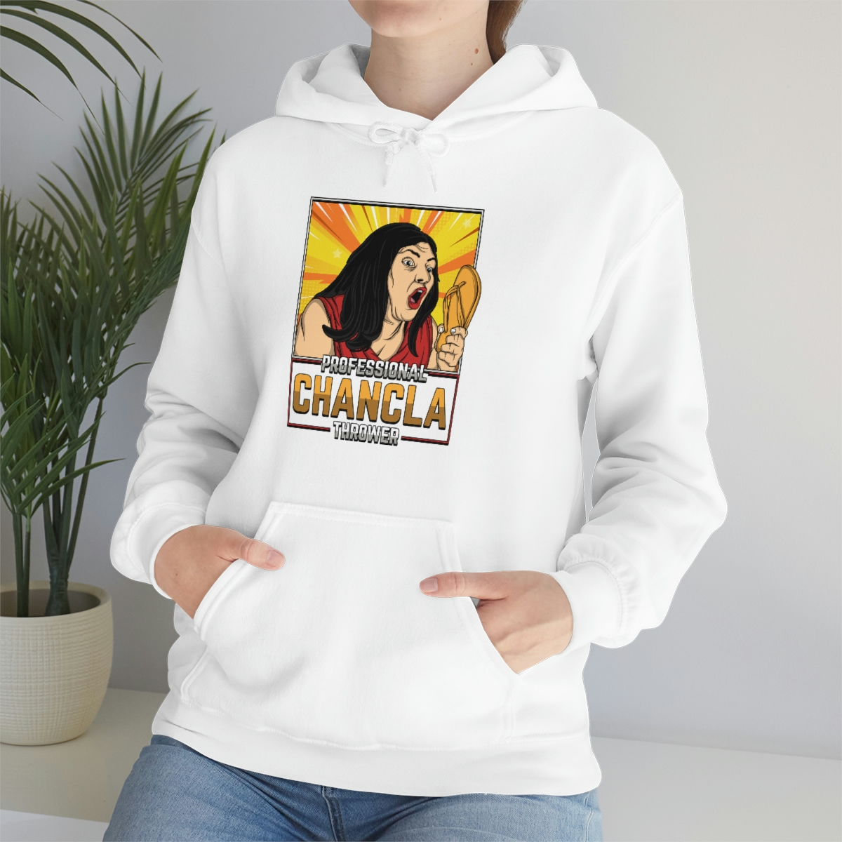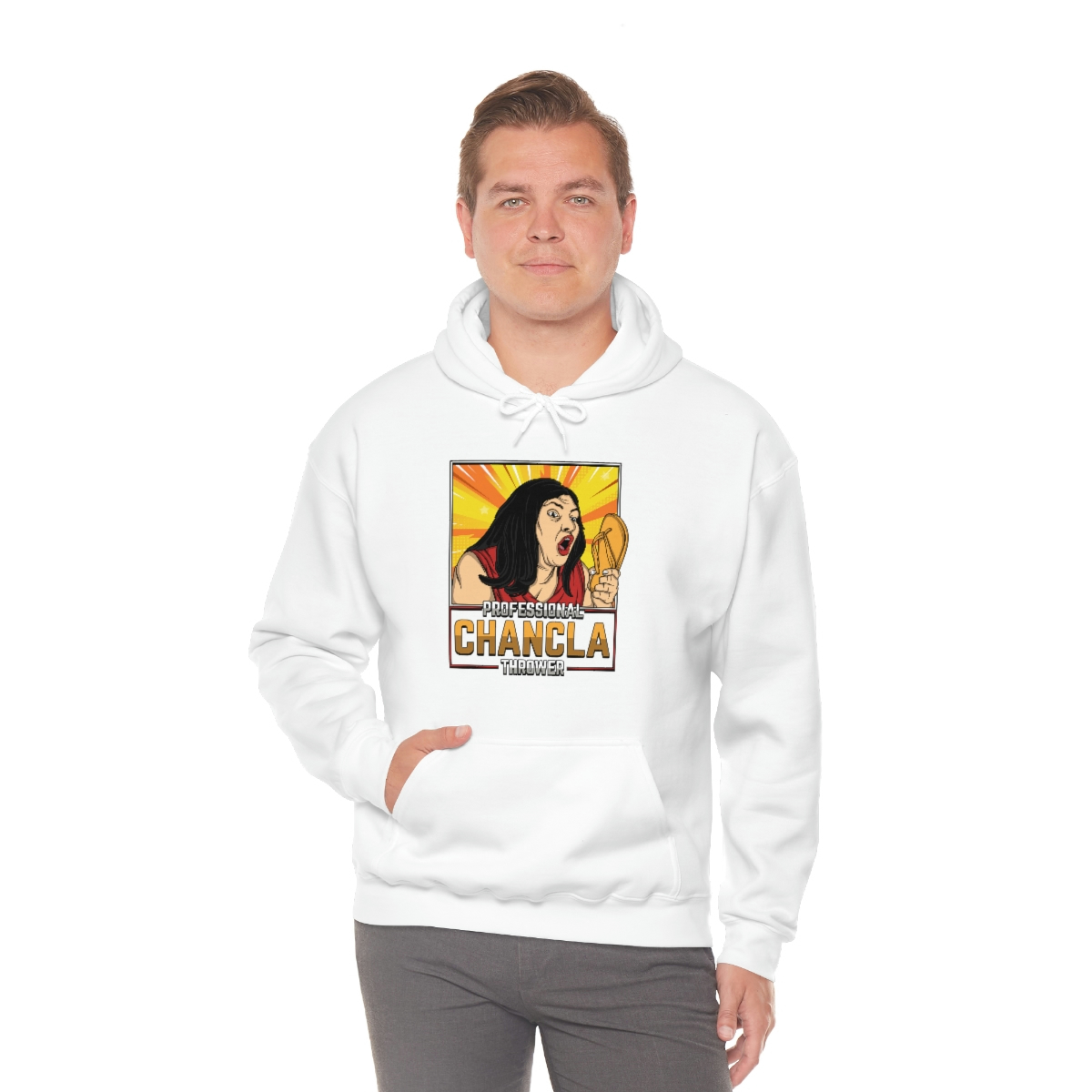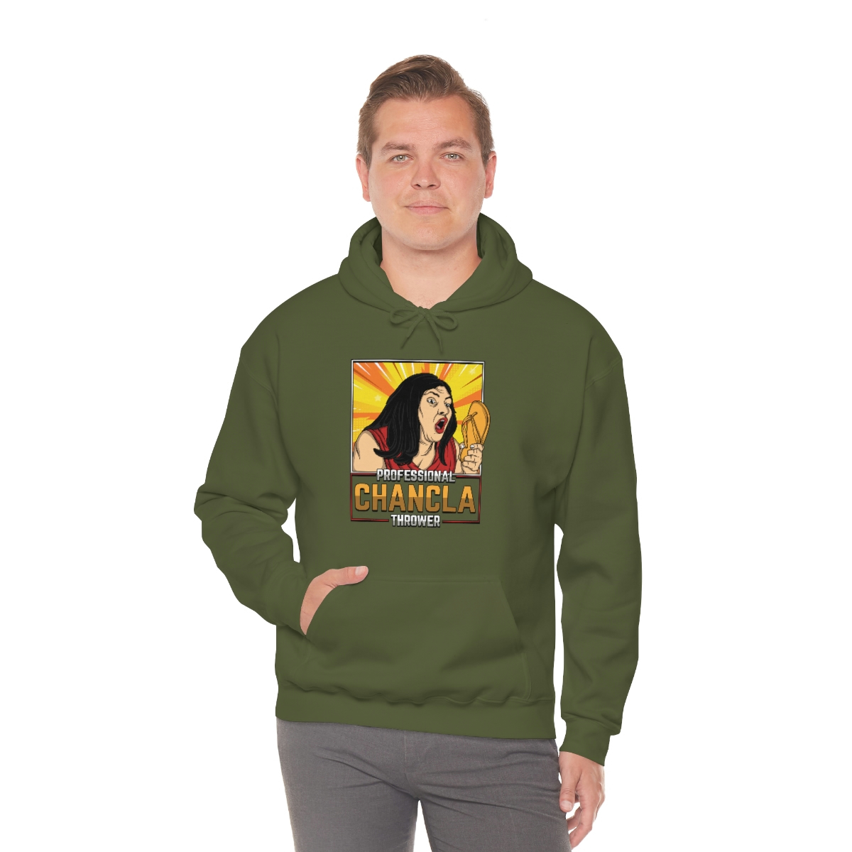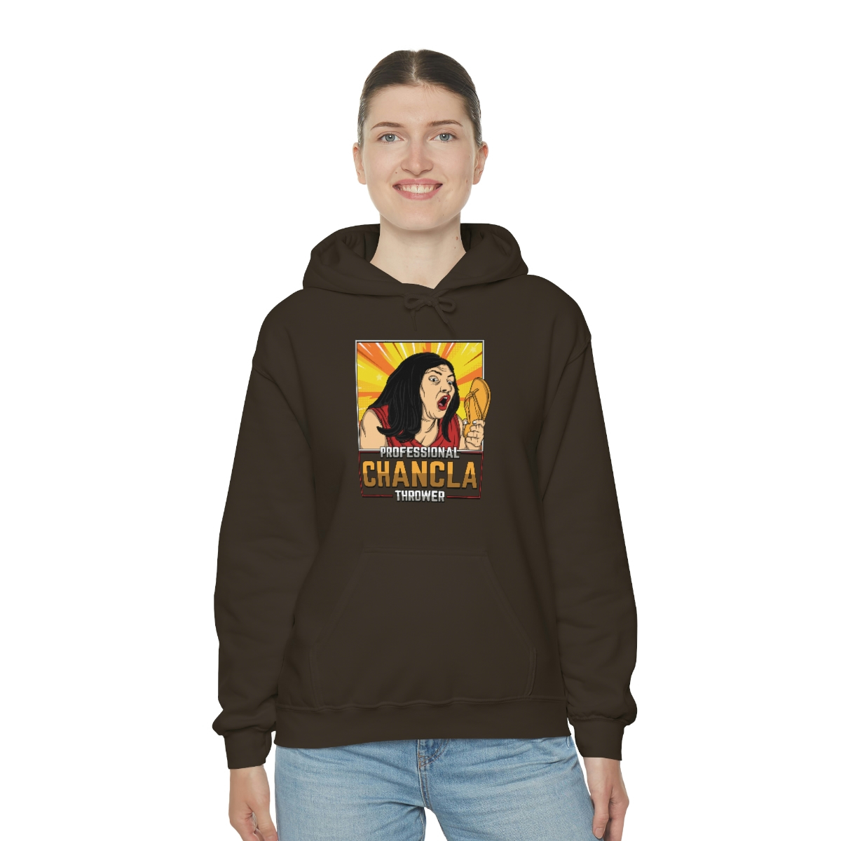 Are you a Professional Chancla Thrower? Do you want to show off your skills in style? Then look no further than this Professional Chancla Thrower Unisex Heavy Blend™ Hooded Sweatshirt.