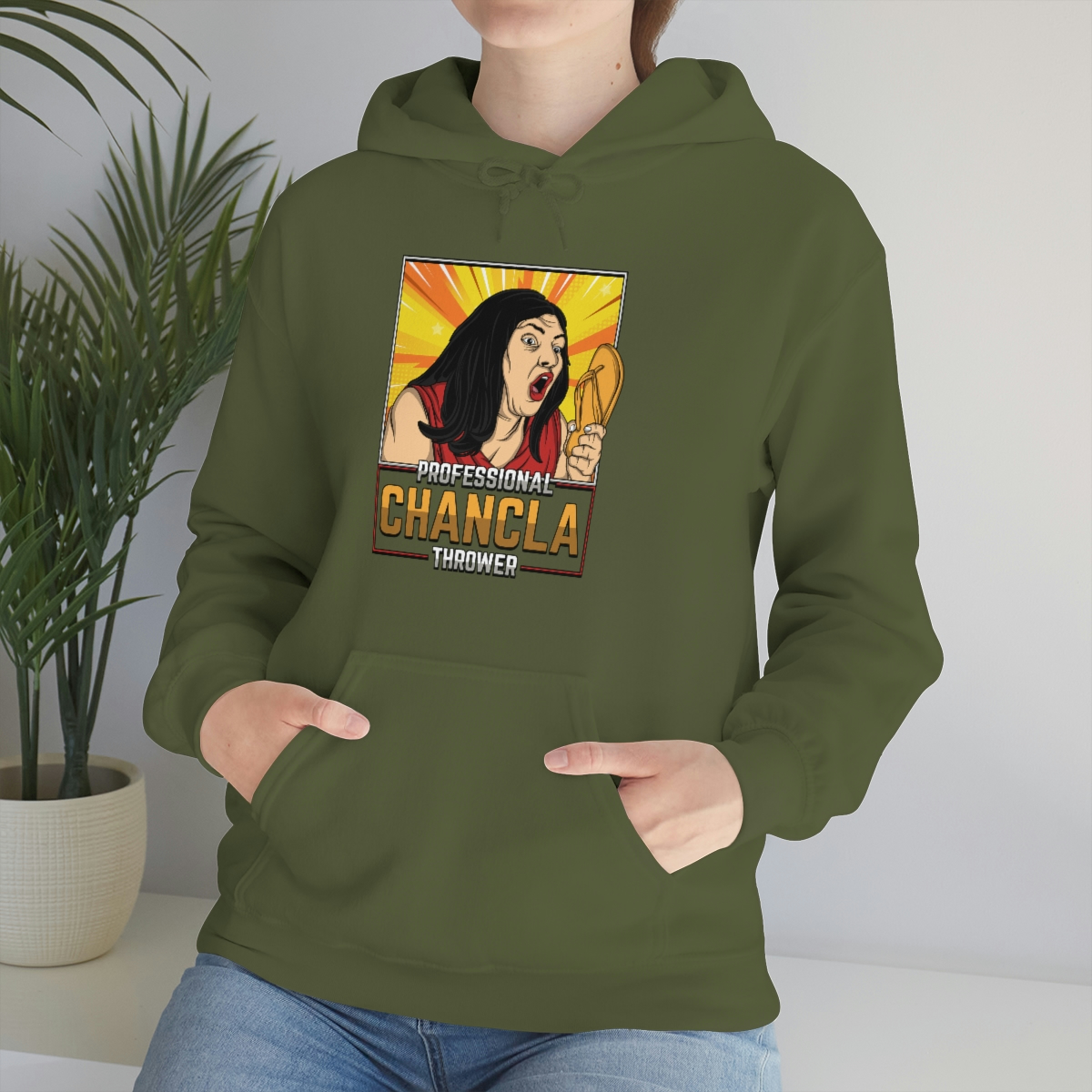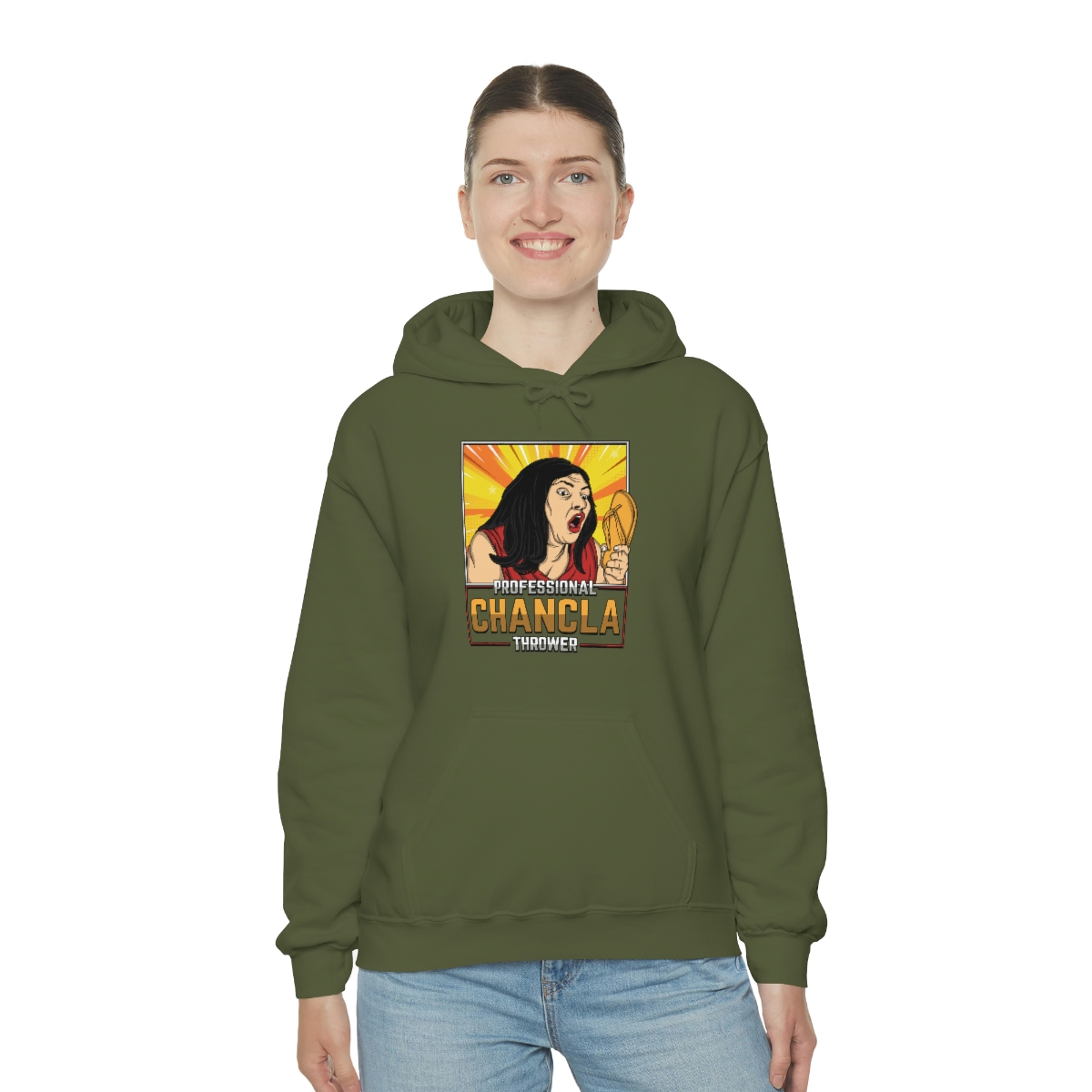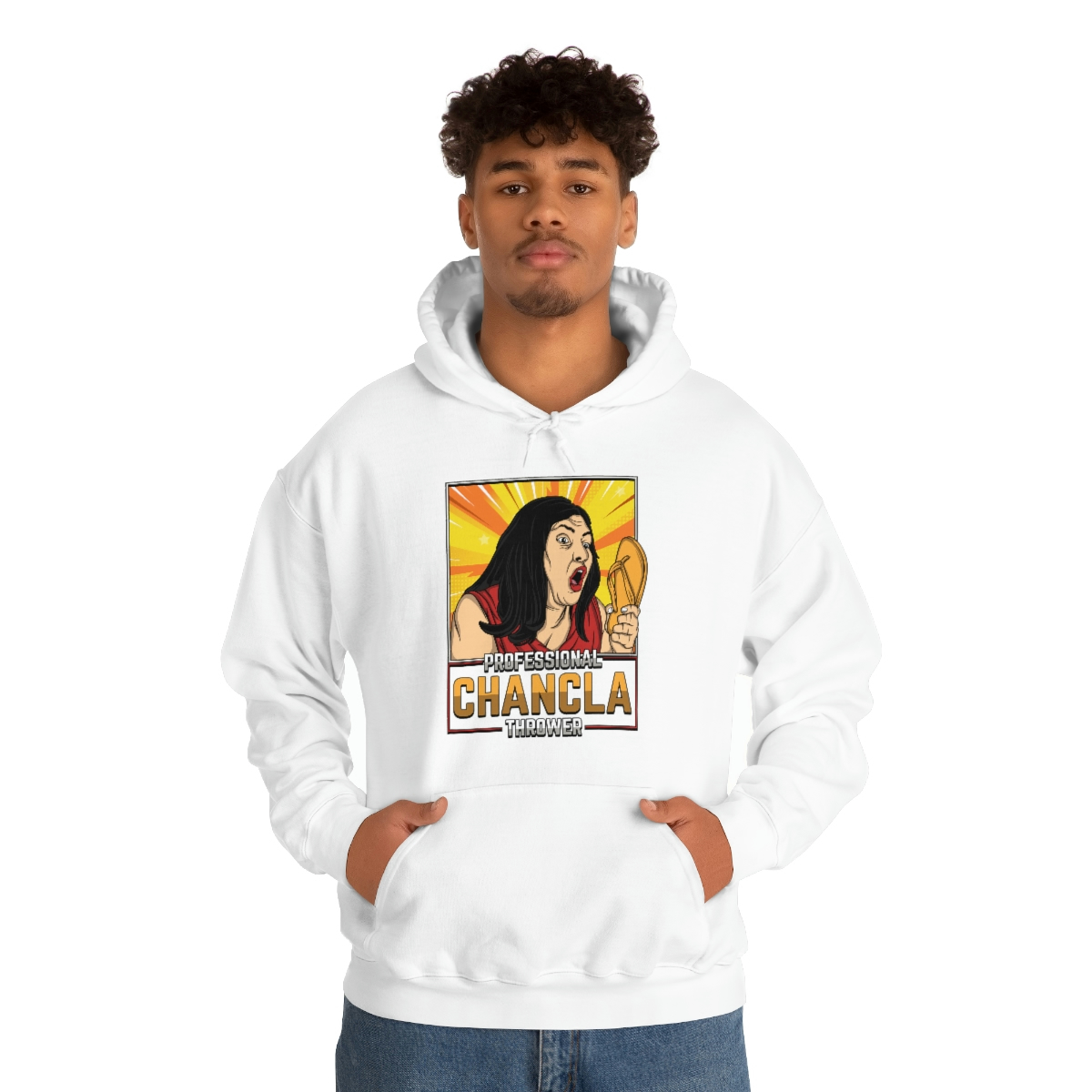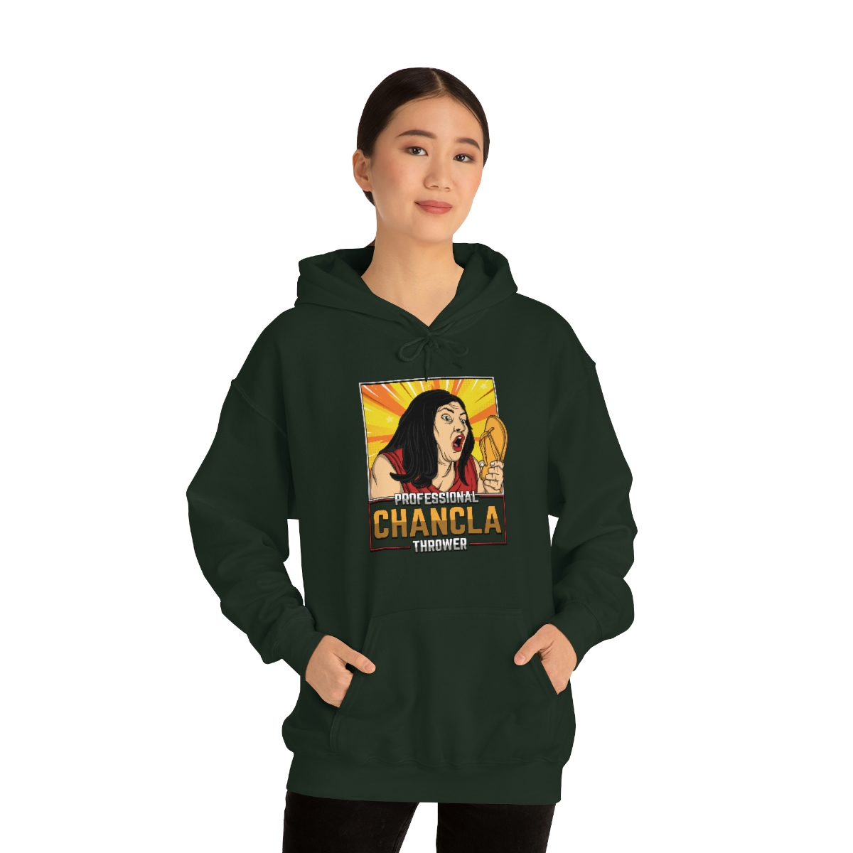 Are you a Professional Chancla Thrower? Do you want to show off your skills in style? Then look no further than this Professional Chancla Thrower Unisex Heavy Blend™ Hooded Sweatshirt.