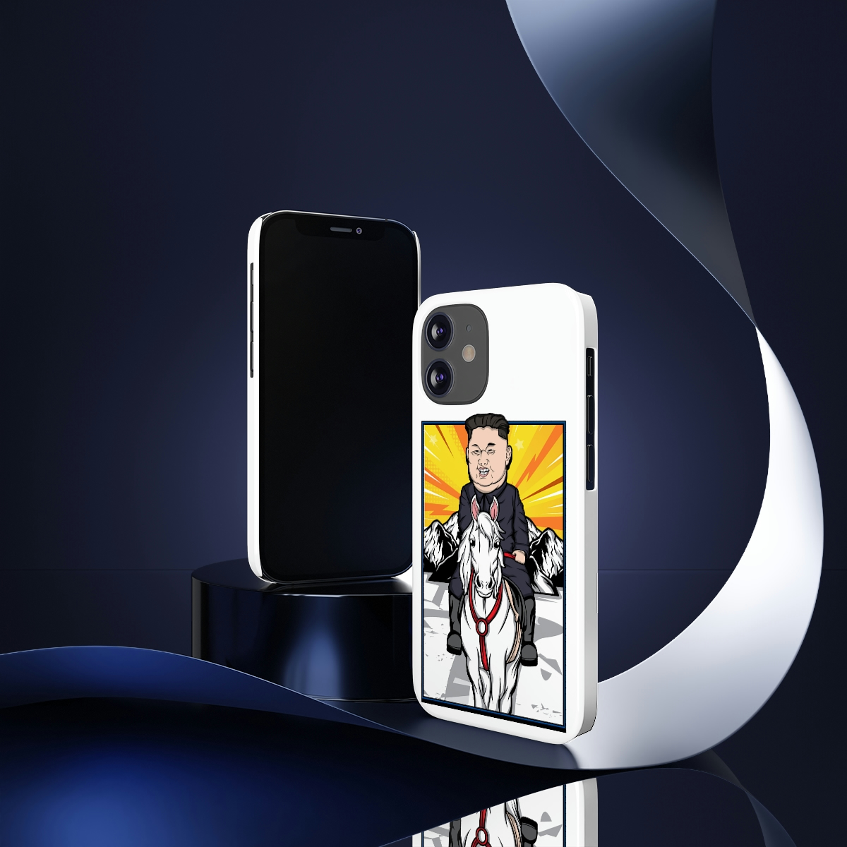 Whether you’re looking to make a statement or just want a phone case that complements your phone’s aesthetics, the Kim Jung Un Riding White Horse Slim Phone Cases are the perfect accessory for any occasion.