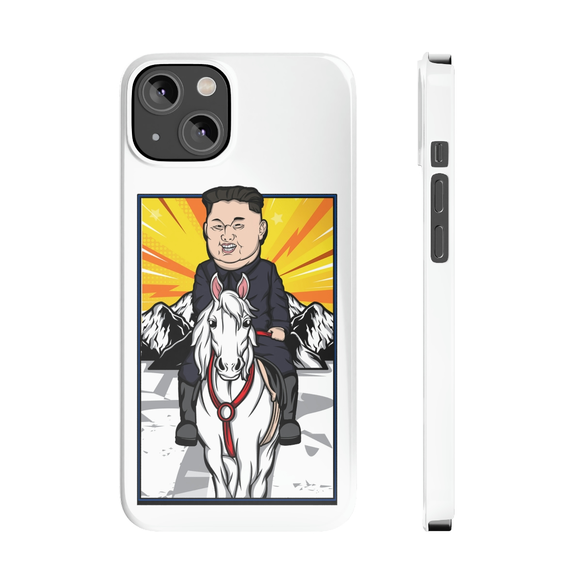 Looking for a unique phone case that stands out from the rest? Look no further than the Kim Jung Un Riding White Horse Slim Phone Case! These cases are designed to provide a flawless fit for your phone while also showcasing your personality with high-detail designs.