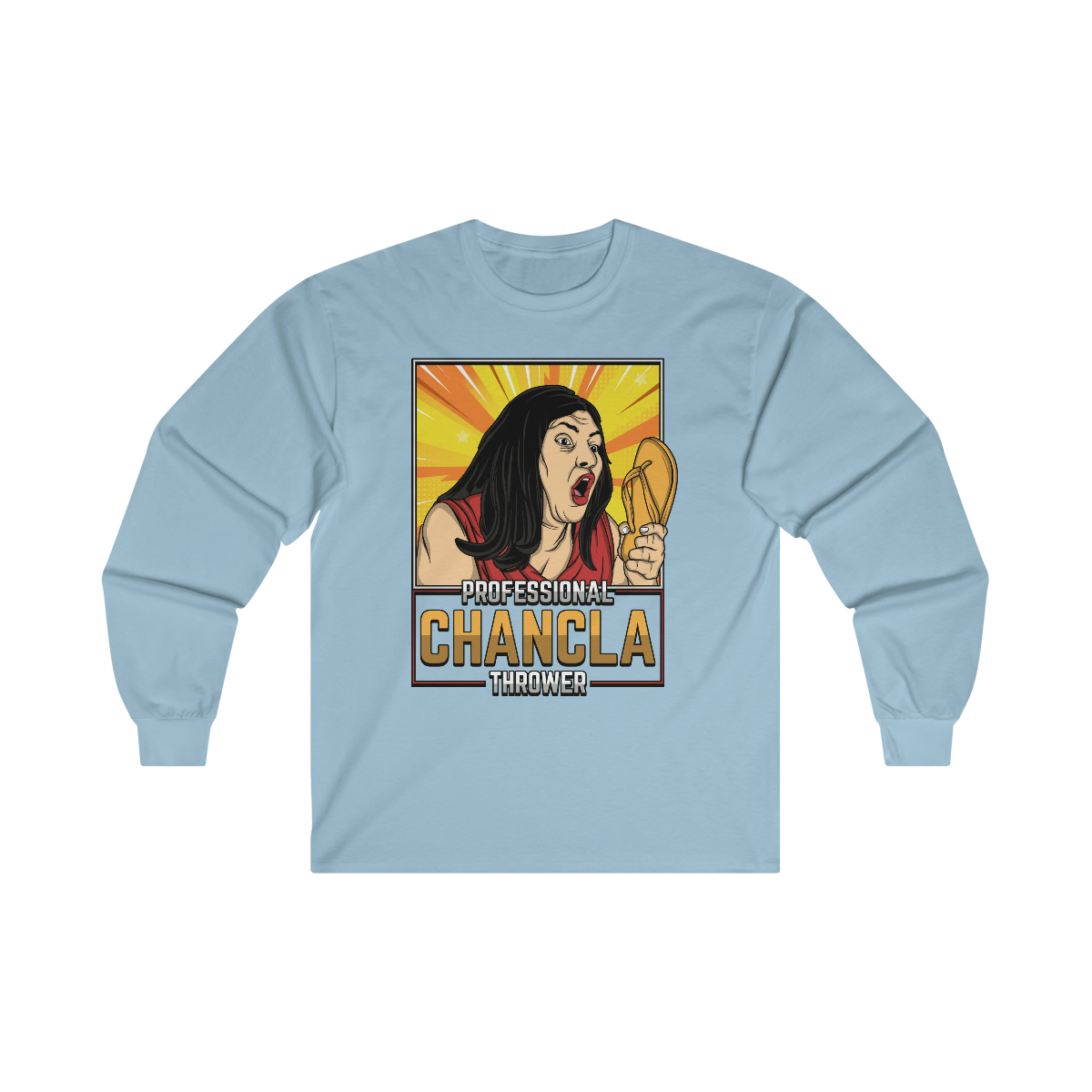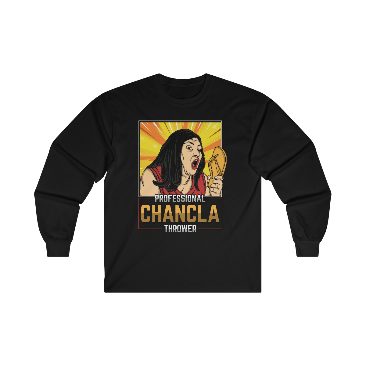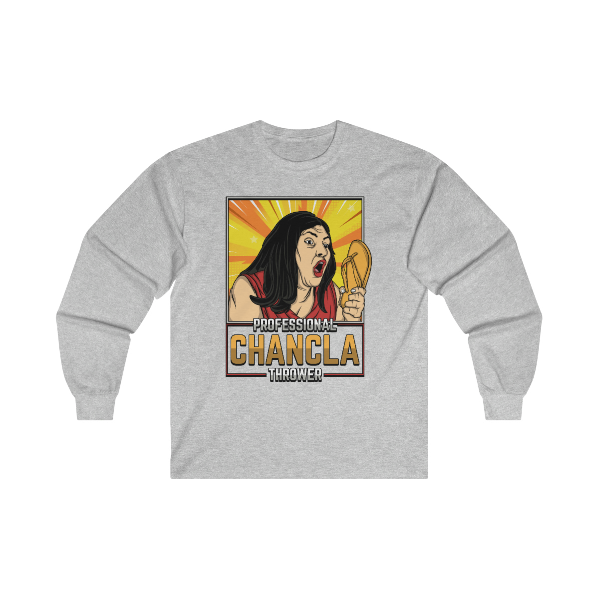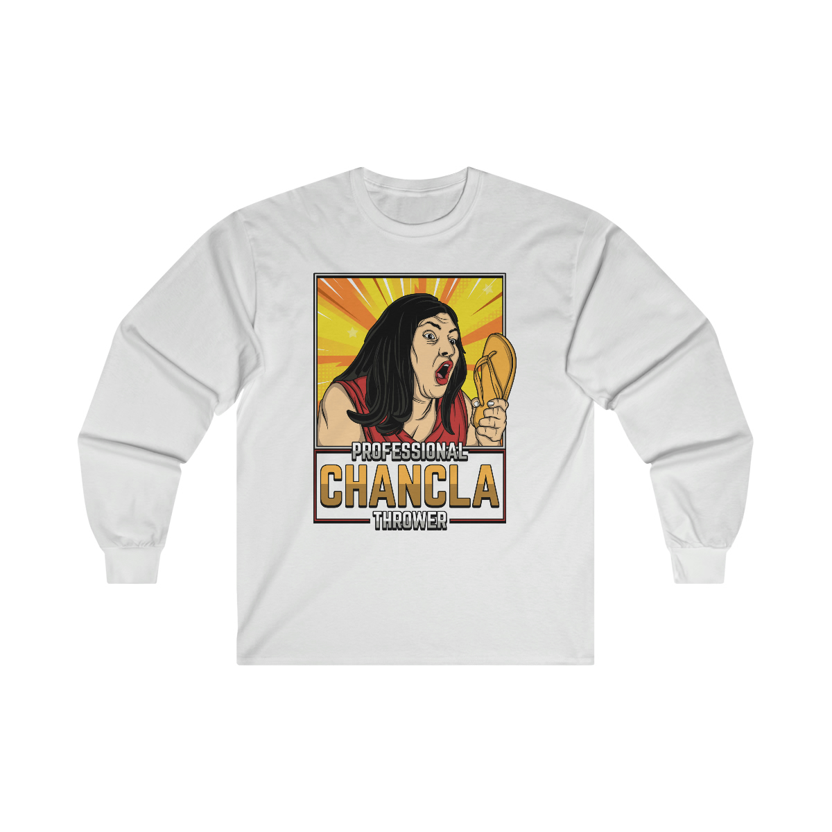 If you’re a pro at throwing chanclas, this Professional Chancla Thrower Ultra Cotton Long Sleeve Tee is the perfect way to show off your skills. The eye-catching graphic on the front features a pair of chanclas and the text “Professional Chancla Thrower,” letting everyone know that you’re a master at this classic Latin American sport.