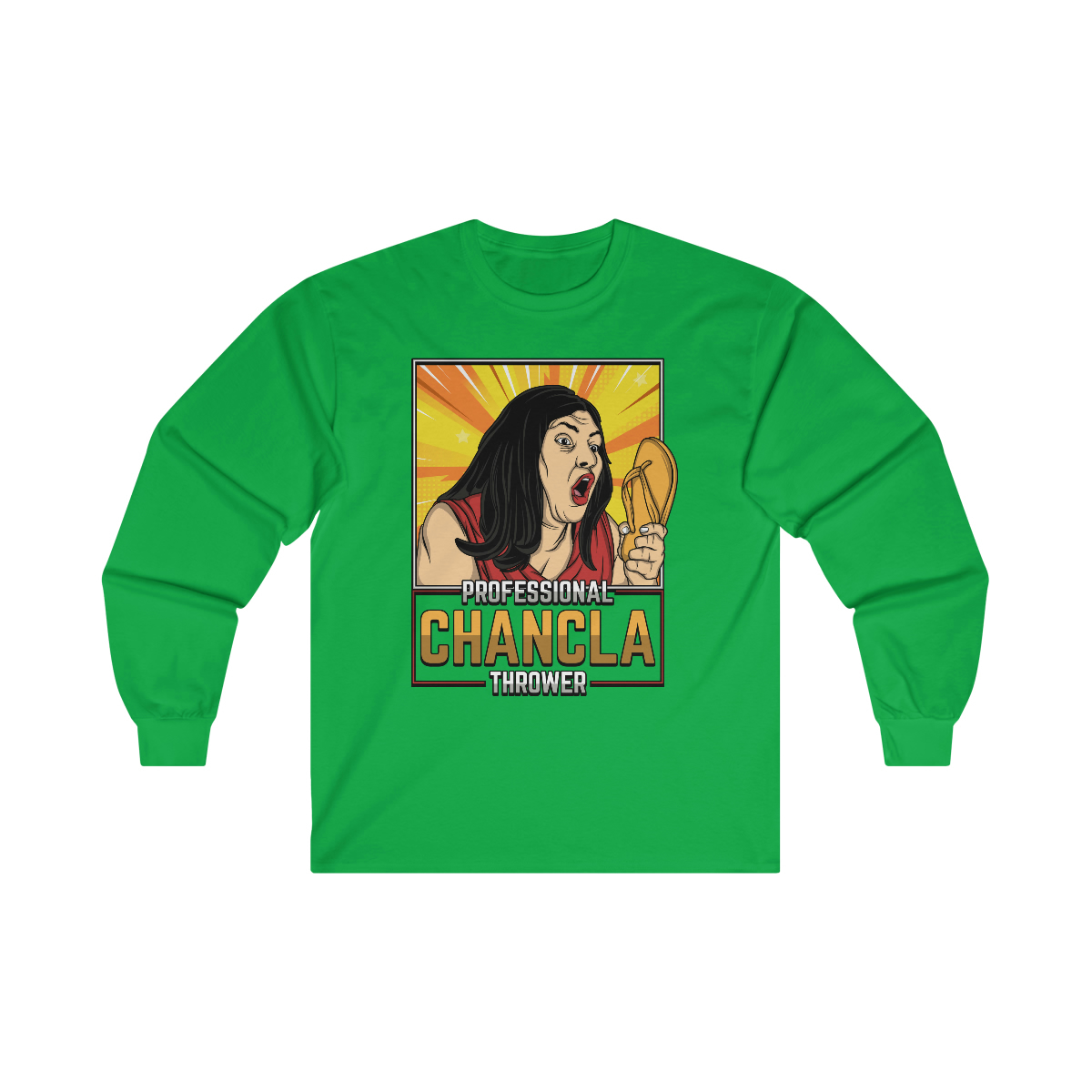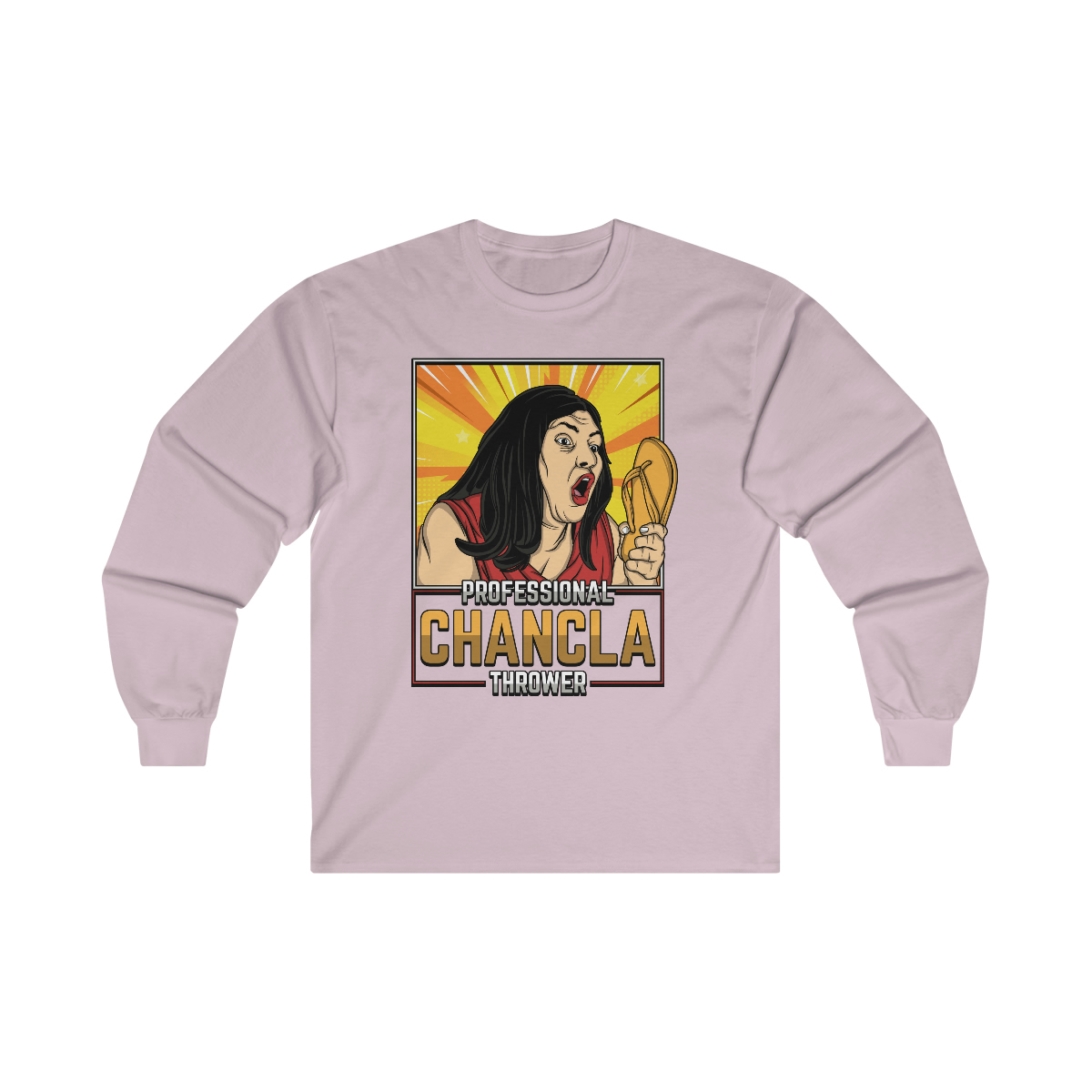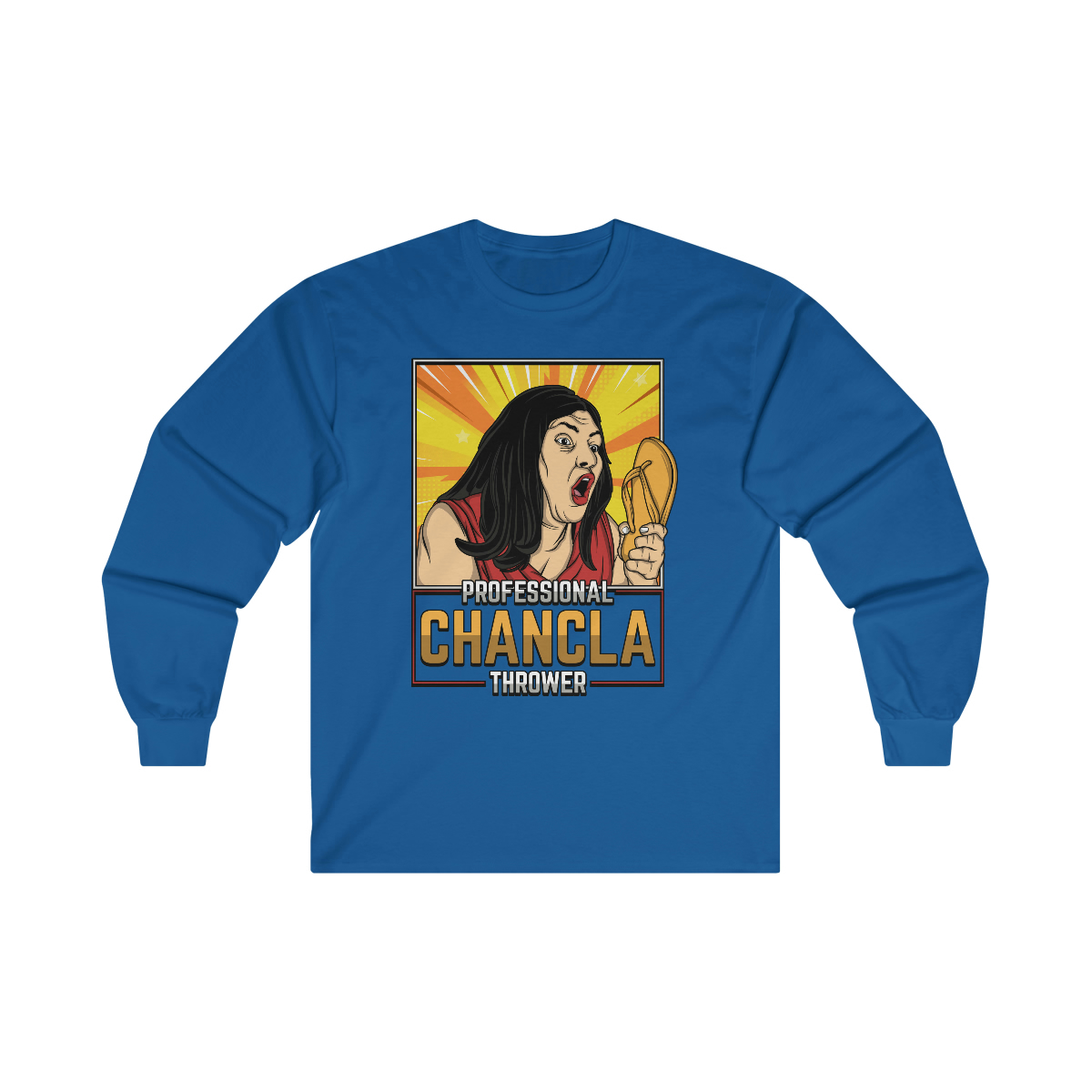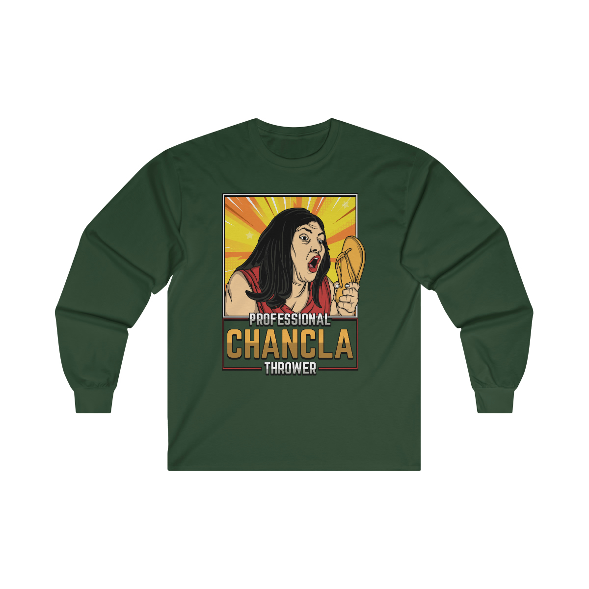 If you’re a pro at throwing chanclas, this Professional Chancla Thrower Ultra Cotton Long Sleeve Tee is the perfect way to show off your skills. The eye-catching graphic on the front features a pair of chanclas and the text “Professional Chancla Thrower,” letting everyone know that you’re a master at this classic Latin American sport.