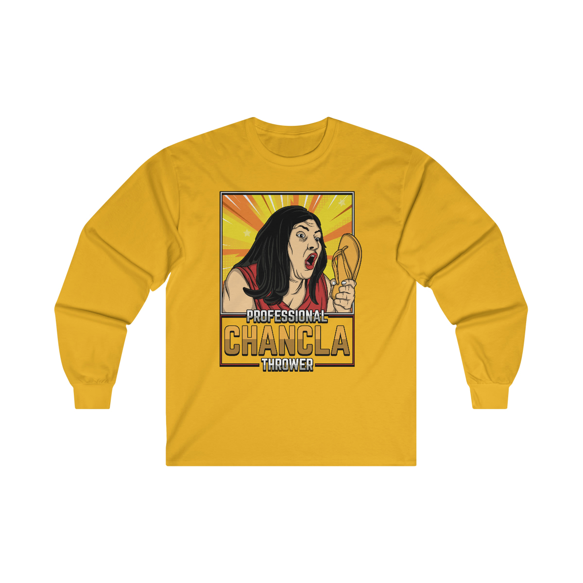Whether you’re a seasoned pro or just starting out, this Professional Chancla Thrower Ultra Cotton Long Sleeve Tee is a must-have addition to your wardrobe. So why wait? Add it to your cart today and start showing off your chancla-throwing skills in style!
